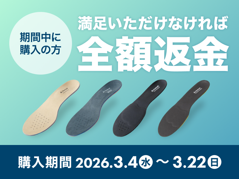 ※商品の性質上、インソールご使用時はお手持ちの靴の形に合わせてカットが必要となります。通常はカット後のご返品は承っておりませんが、キャンペーン期間中はカット後の商品でも返品を承ります。
