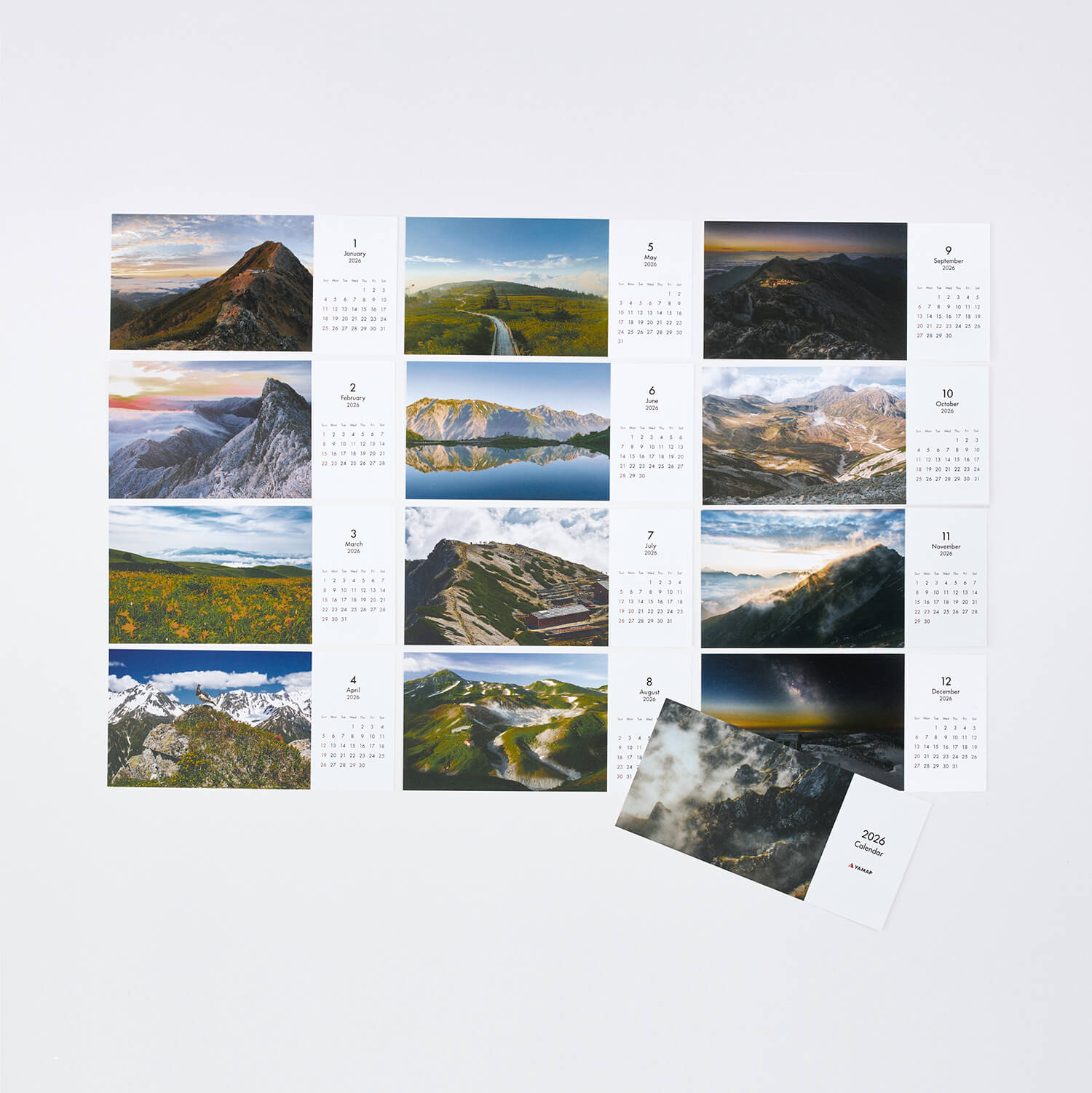ひと月ごとに違う山の表情を楽しめるオリジナルカレンダーは、山に行けない日も心を癒してくれる存在です。