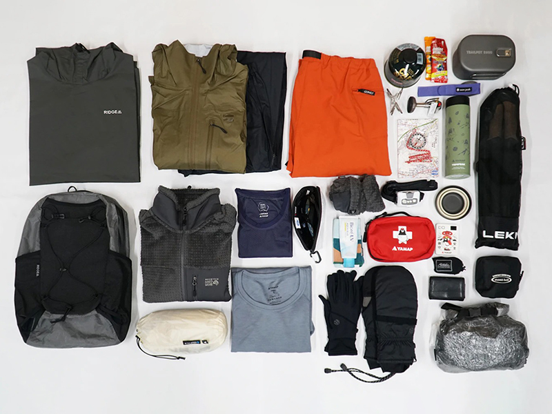 基本アイテムで紹介したウェアも十分な耐候性を備えていますが、天候の変化による急な冷え込みや雨・雪から身体をしっかりと守るには、やはりレインウェアが欠かせません。