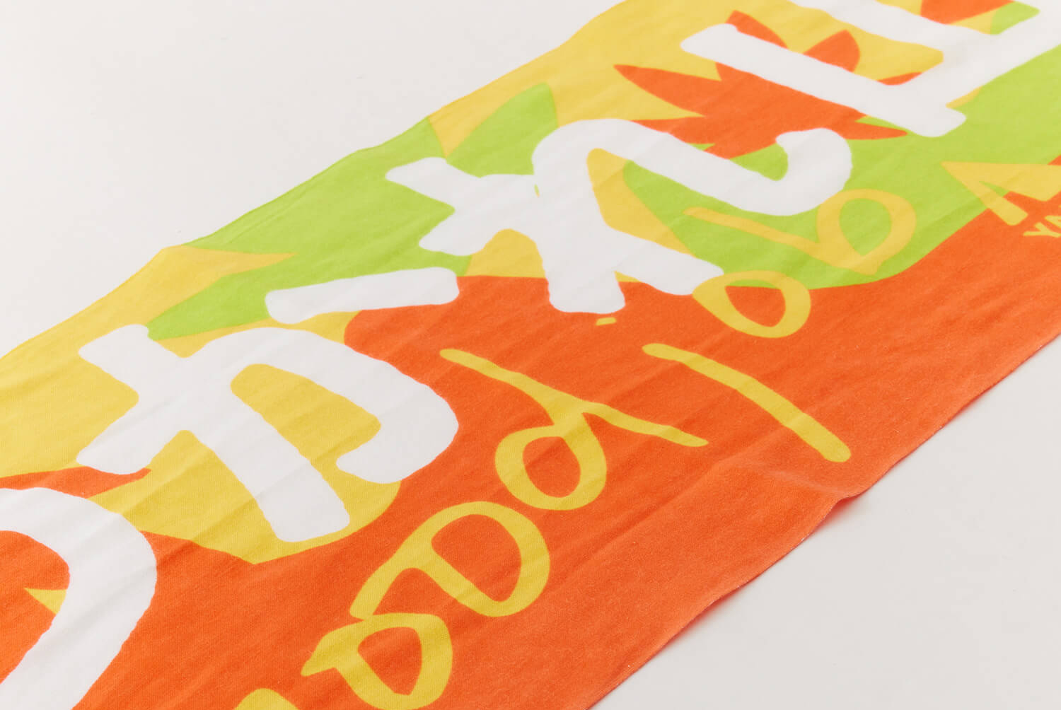 スポーツてぬぐいは、長さ90㎝の従来の手ぬぐいよりも20㎝長い110㎝で作られています。これは、頭に巻いたり首からかけたりといった、アウトドアシーンでよくある使い方を考慮してのもの。アウトドア用途であることはもちろん、江戸の時代と今では人の体型の違いを考えても、これはとても理にかなったものでしょう。