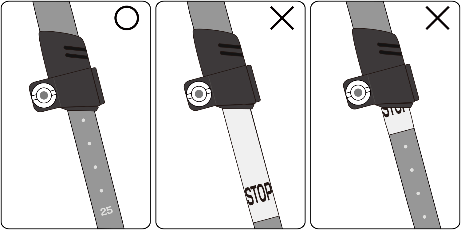 1.連結時にSTOPマーク(銀色の印刷部分)が見えている状態ですと、製品の耐荷重が低下し、使用中の破損につながる恐れがあります。STOPマークが完全に隠れた状態で使用してください。